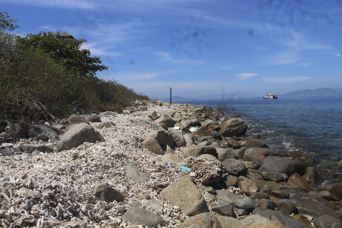 San hô gãy bị sóng đánh lên bờ thành lớp dày ở khu vực Hòn Mun. |