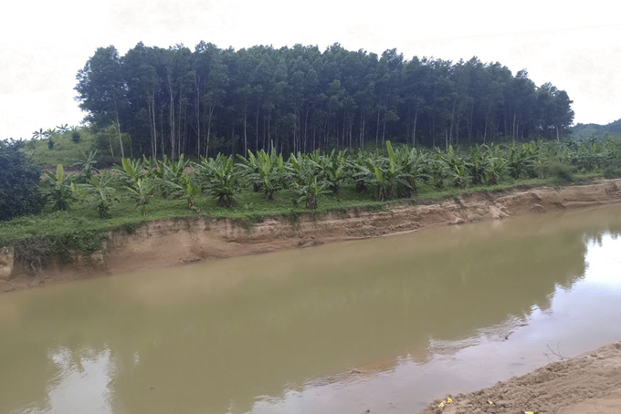 Khu vực suối Sông Cầu (tại xã Khánh Phú, huyện Khánh Vĩnh) bị sạt lở. |