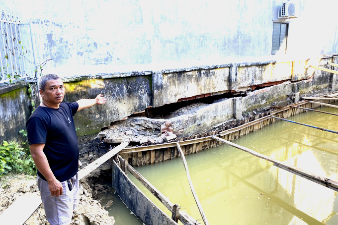Ông Bùi Thanh Huy, công chức địa chính - xây dựng phường Ngọc Hiệp cho biết, ngày 27-11, phường tiếp nhận trình báo của bà Huyền về việc công trình nhà ở của gia đình bà bị nứt và sụt lún. Ngày 28-11, tổ công tác gồm đại diện các đơn vị: UBND phường Ngọc Hiệp, Phòng Quản lý đô thị TP. Nha Trang, Phòng Giáo dục và Đào tạo TP. Nha Trang (chủ đầu tư Dự án Trường Tiểu học Ngọc Hiệp) và nhà thầu thi công hạng mục bể nước ngầm đã kiểm tra thực địa hiện trường vụ việc. Kết quả kiểm tra xác định, việc sụt lún ở công trình nhà ở của bà Huyền hiện trạng là nguy hiểm, không thể tiếp tục ở.