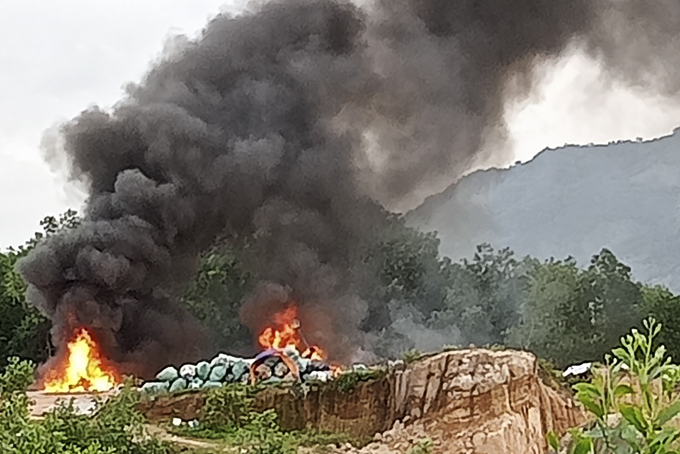 Việc đốt rác ở bãi rác Suối Lau 2 ngày 9-2 gây ảnh hưởng đến môi trường. (Ảnh do người dân cung cấp) |