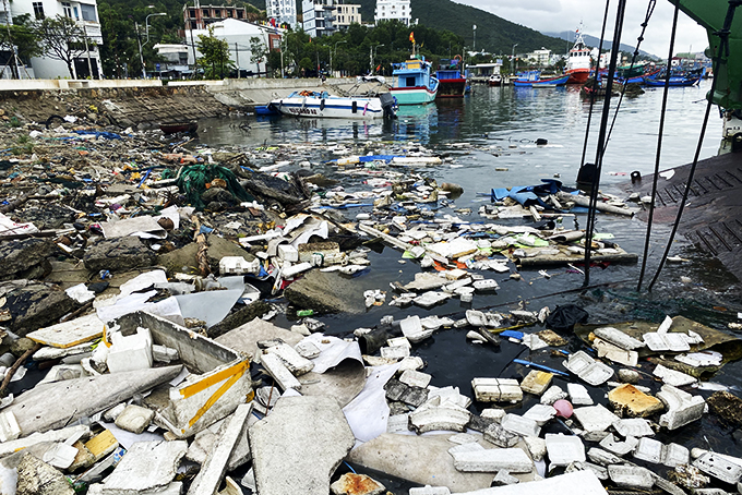 Khu vực Cảng Hòn Rớ (xã Phước Đồng) ngập rác thải. |