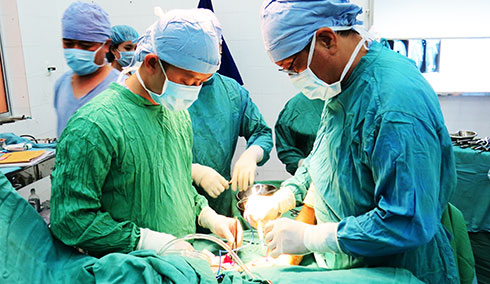 Bác sĩ đang phẫu thuật cho bệnh nhân. |