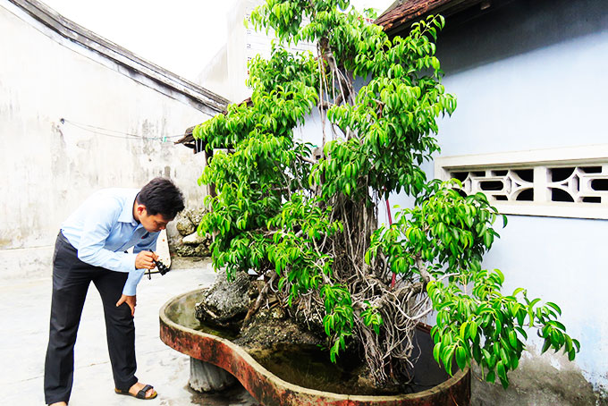 Kiểm tra lăng quăng tại nhà một hộ dân ở xã Vạn Phước. |