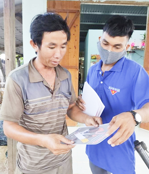 Đoàn viên xã Diên Tân tuyên truyền về tác hại của thuốc lá cho người dân thôn Đá Mài. |