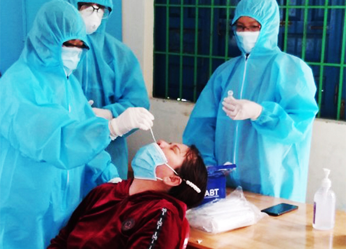 Đội thanh niên tình nguyện xã Vạn Thọ hỗ trợ lấy mẫu xét nghiệm. |