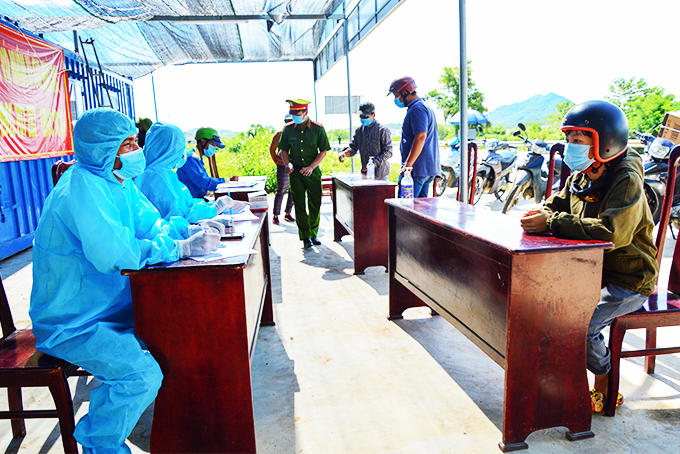 Từ ngày 18-7, người dân di chuyển đến địa bàn huyện Khánh Vĩnh đều phải thực hiện kiểm tra, khai báo y tế. |