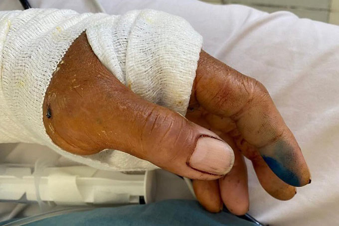 Được biết, hiện nay tình trạng bệnh nhân đang dần ổn định, mạch 2 tay bắt rõ, huyết áp ổn định, đang được theo dõi điều trị và chăm sóc các vết thương; đặc biệt là vết thương ở động mạch cánh tay để tránh tình trạng huyết khối gây tắc mạch tại chỗ hoặc biến chứng huyết khối gây ảnh hưởng cho tình trạng người bệnh.