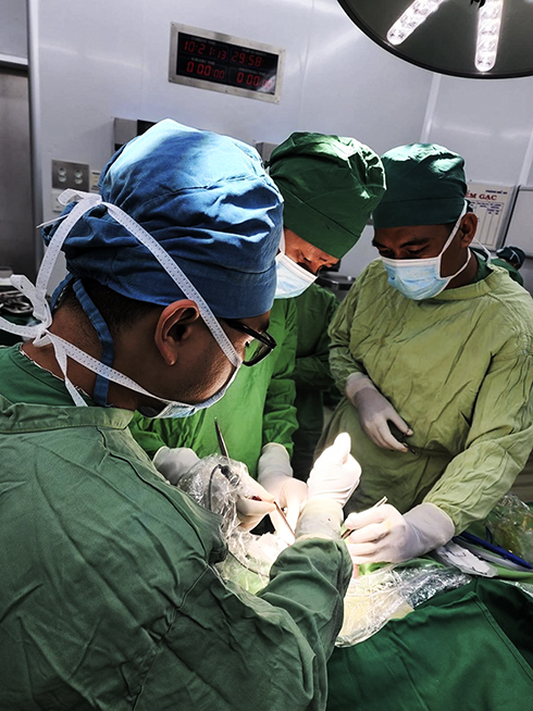 Ê-kíp y, bác sĩ của Bệnh viện Đa khoa tỉnh phẫu thuật cho trẻ. |