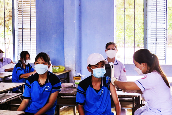 Tiêm vắc xin cho trẻ từ 5 đến dưới 12 tuổi ở huyện Vạn Ninh. |