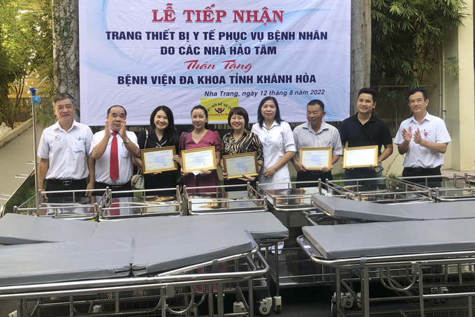 Ngày 12-8, các nhà hảo tâm trong và ngoài tỉnh đã trao tặng cho Bệnh viện Đa khoa tỉnh Khánh Hòa 48 xe tiêm thuốc, 17 chiếc băng ca với tổng trị giá hơn 230 triệu đồng. Sau khi tiếp nhận, các trang thiết bị này được phân bổ về các khoa lâm sàng để phục vụ cho bệnh nhân.