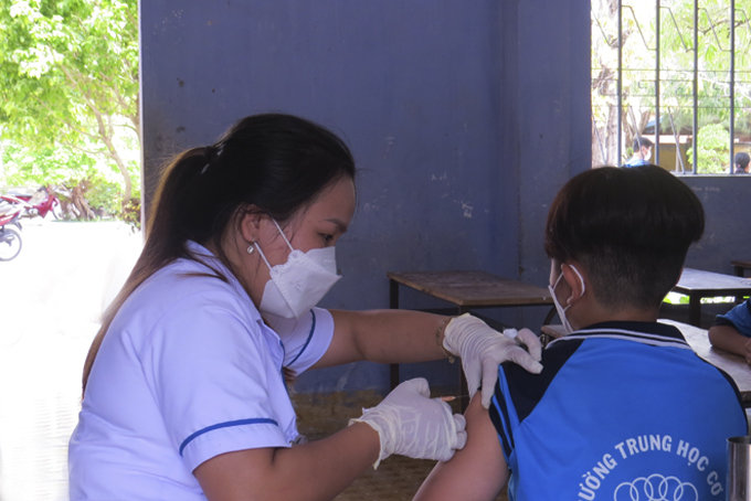 Tiêm vắc xin cho học sinh huyện Vạn Ninh. Ảnh: BKH |